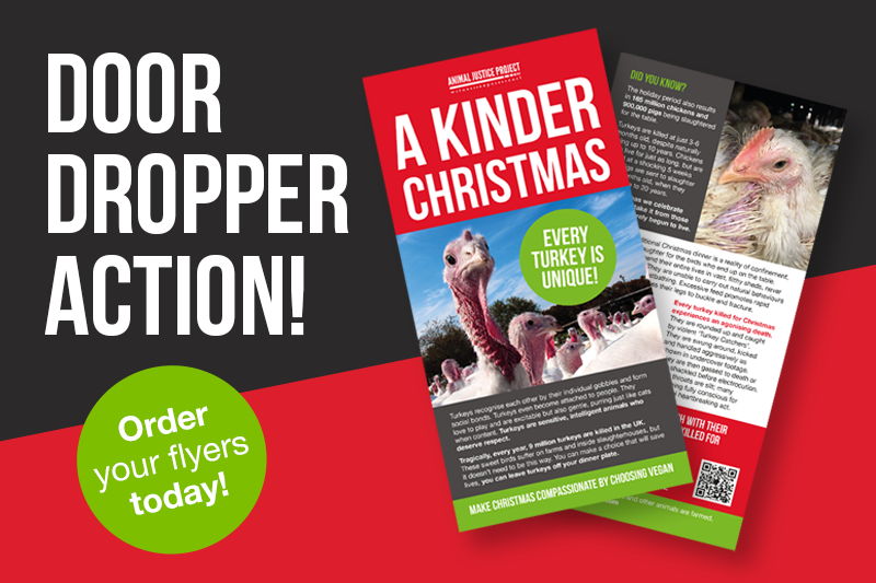 You can help by door-dropping our brand new A Kinder Christmas flyers and inspire kindness where you live b posting them through letterboxes. Each flyer delivers a powerful message: leave turkeys and all animals off the table and choose compassion instead.